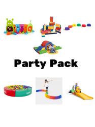 Party Pack 1: $60 for weekend hire. This pack includes a roller coaster, rainbow ball pit, caterpillar crawling frame, soft play foam blocks, rainbow balance beam, and rainbow balance stones.